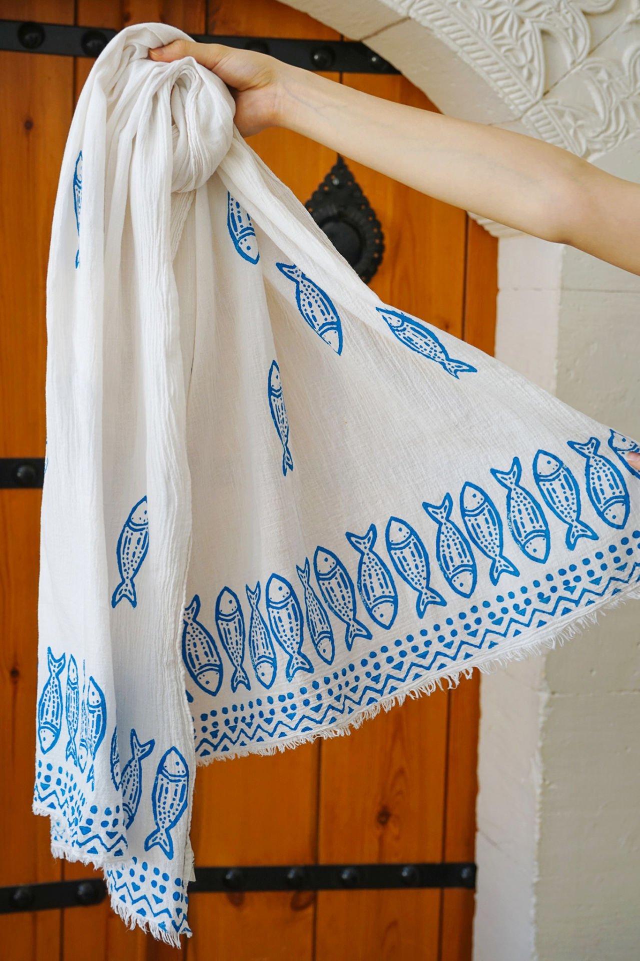 %100 organik pamuk şalımız, kendinden bürümcüklü dokudadır. Kumaşı, Global Organik Tekstil Standartları belgesine uygun olarak, bitkilerden elde edilen organik boyalarla boyanmıştır.
