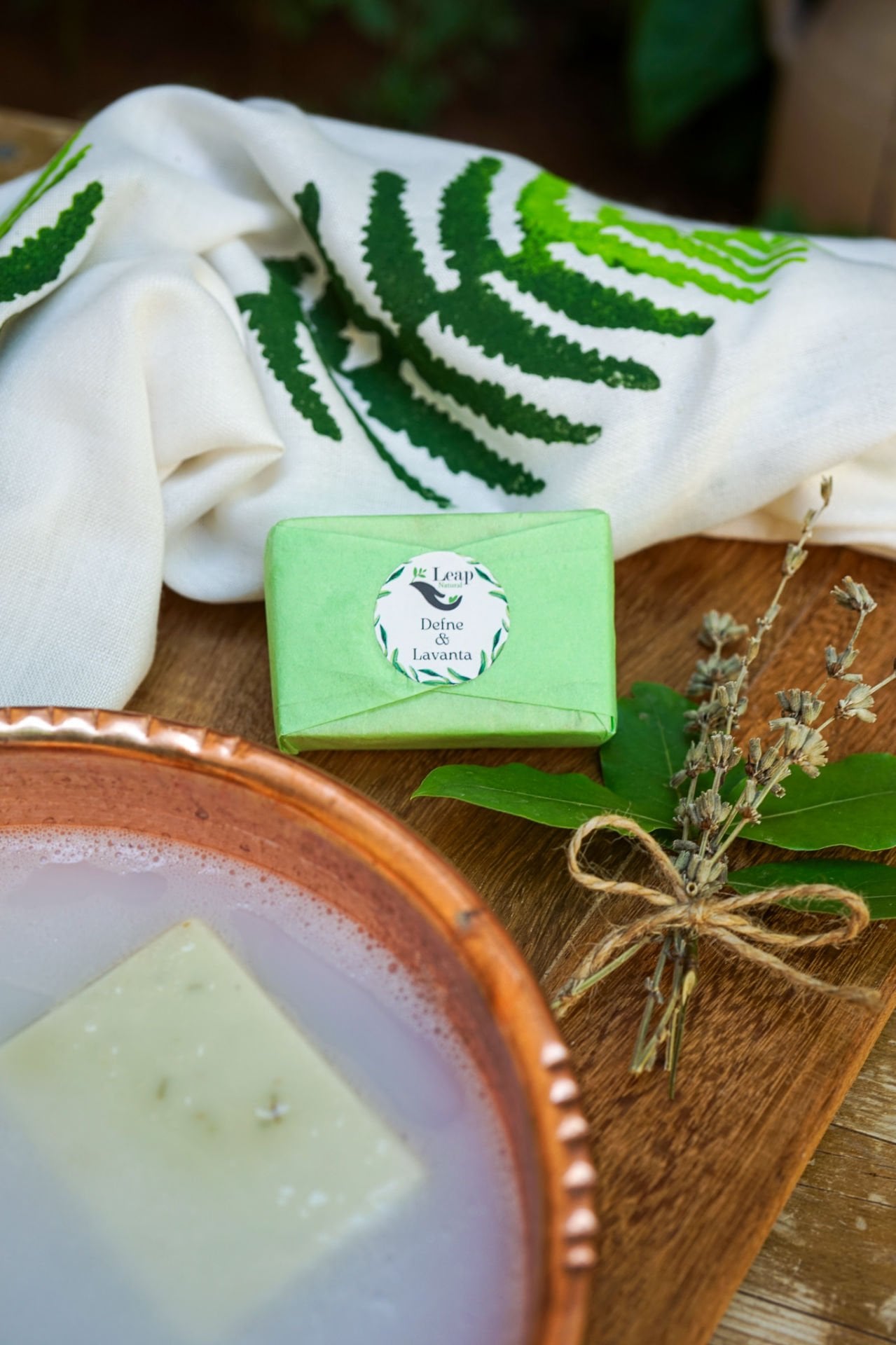 Antik çağlardan beri kullanılan tıbbi ve aromatik bitkiler defne ve lavantayı bir araya getiren Defne & Lavanta Sabununun cildi derinlemesine temizleme, besleme ve dinlendirme özellikleri yoğun bir şekilde hissedilmektedir.