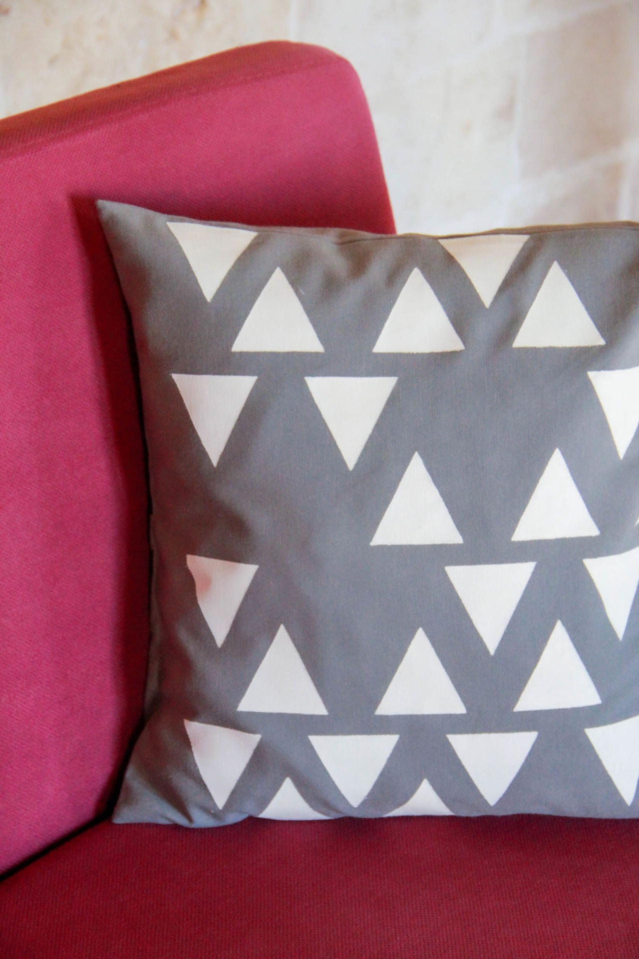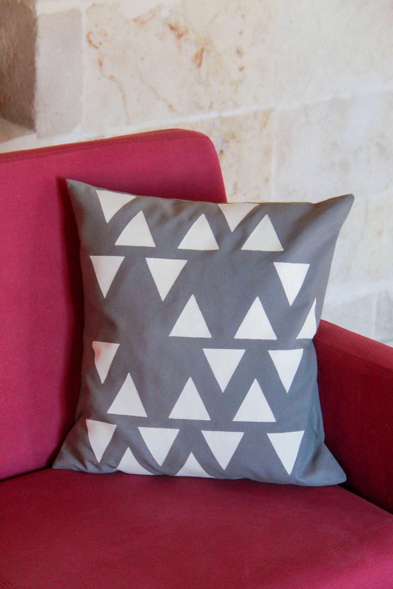 Geometrik Üçgen Desenli Gri Kırlent Kılıfı 40x40 cm.