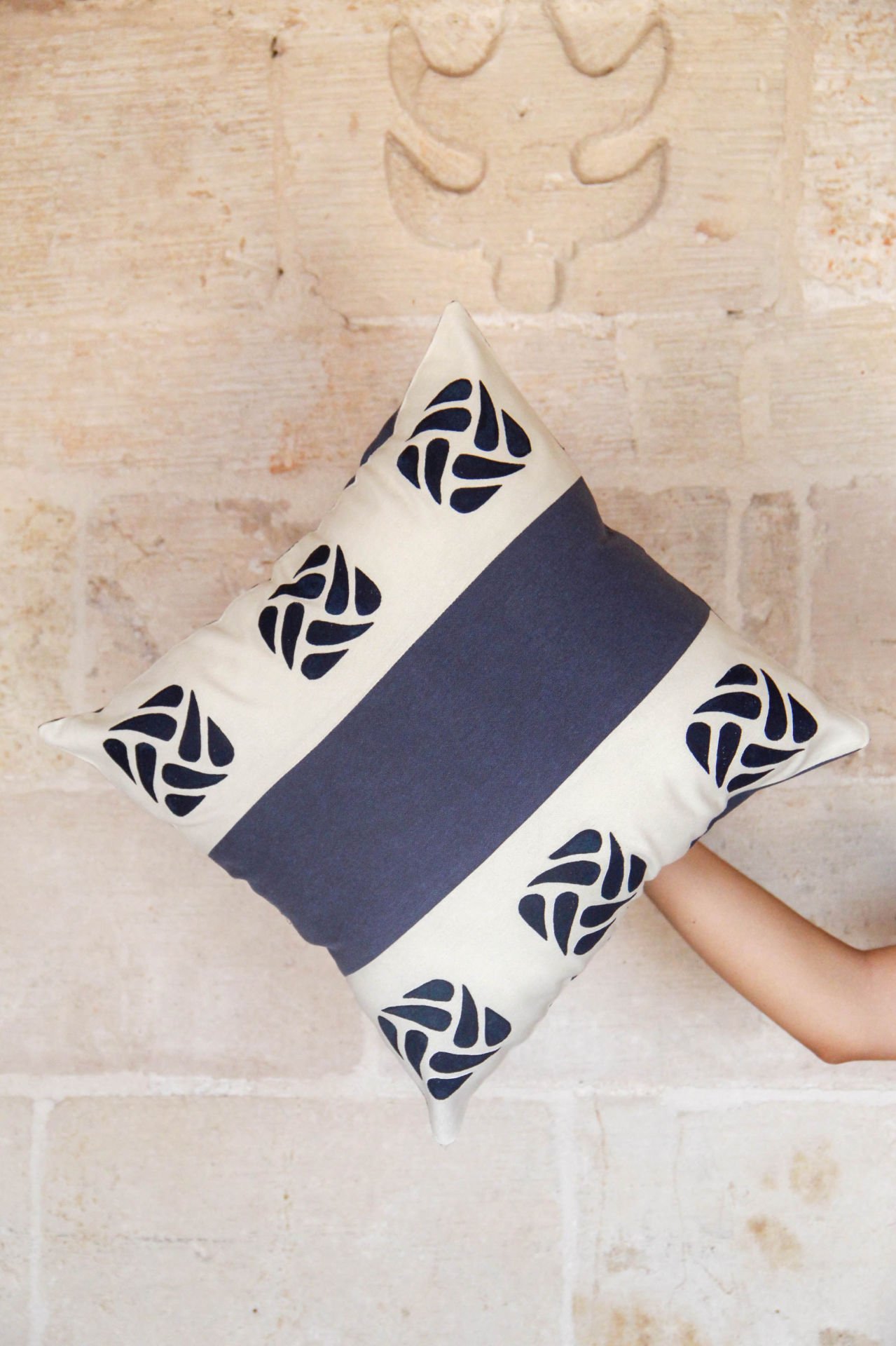 40x40 cm kırlent kılıfımız, sıkı dokunmuş kalın keten kumaştan üretilmiştir. Yapısı kanvas kumaşlara benzer. Üzerindeki desenler, Anadolu'ya özgü ahşap baskı tekniği ile ıhlamur ağacından üretilmiş kalıplarla el emeği ile uygulanmaktadır.