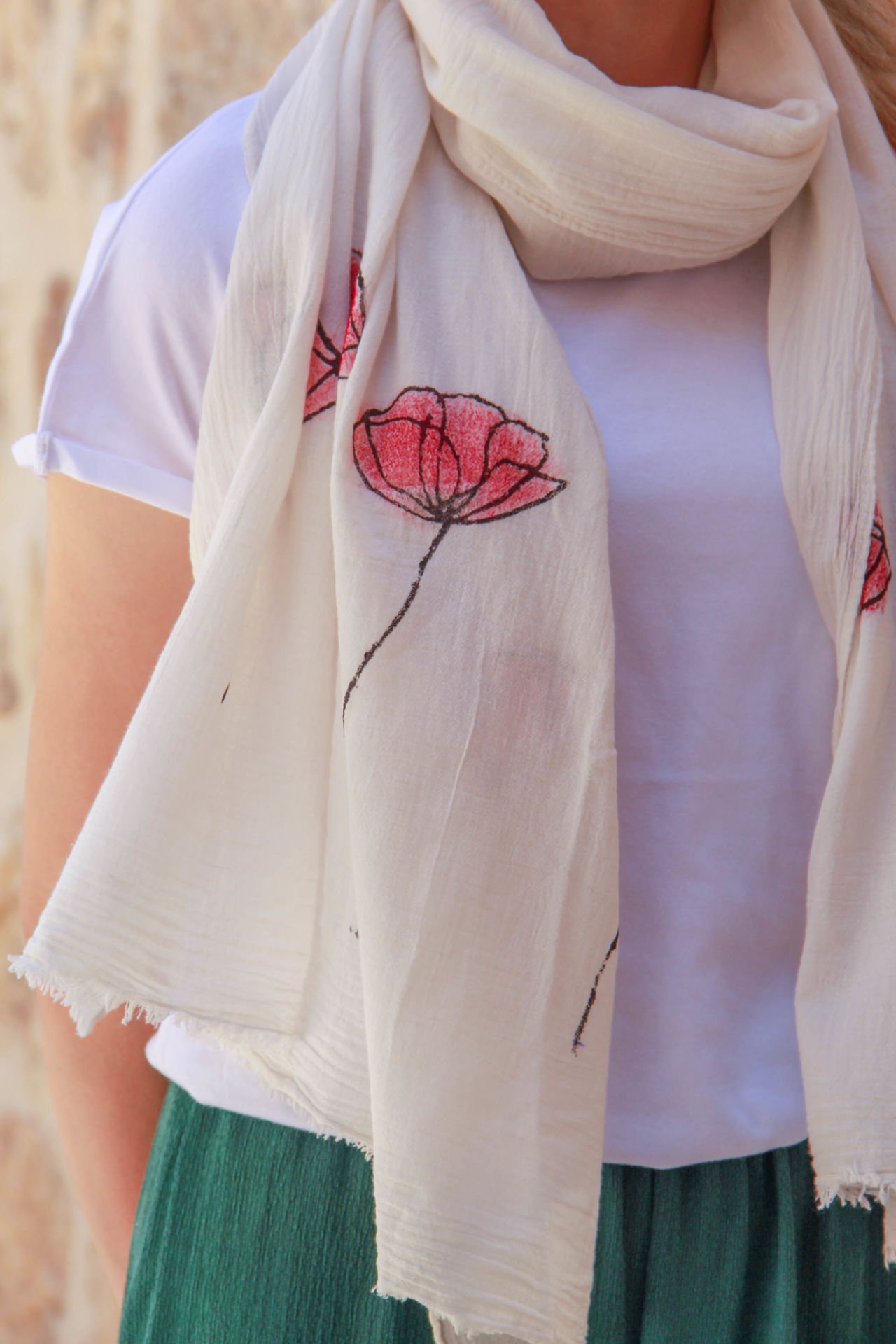 Kırmızı Gelincikler Desenli Organik Pamuk Şal AHSAPSAL23 Kırmızı Gelincikler Desenli Organik Pamuk Şal