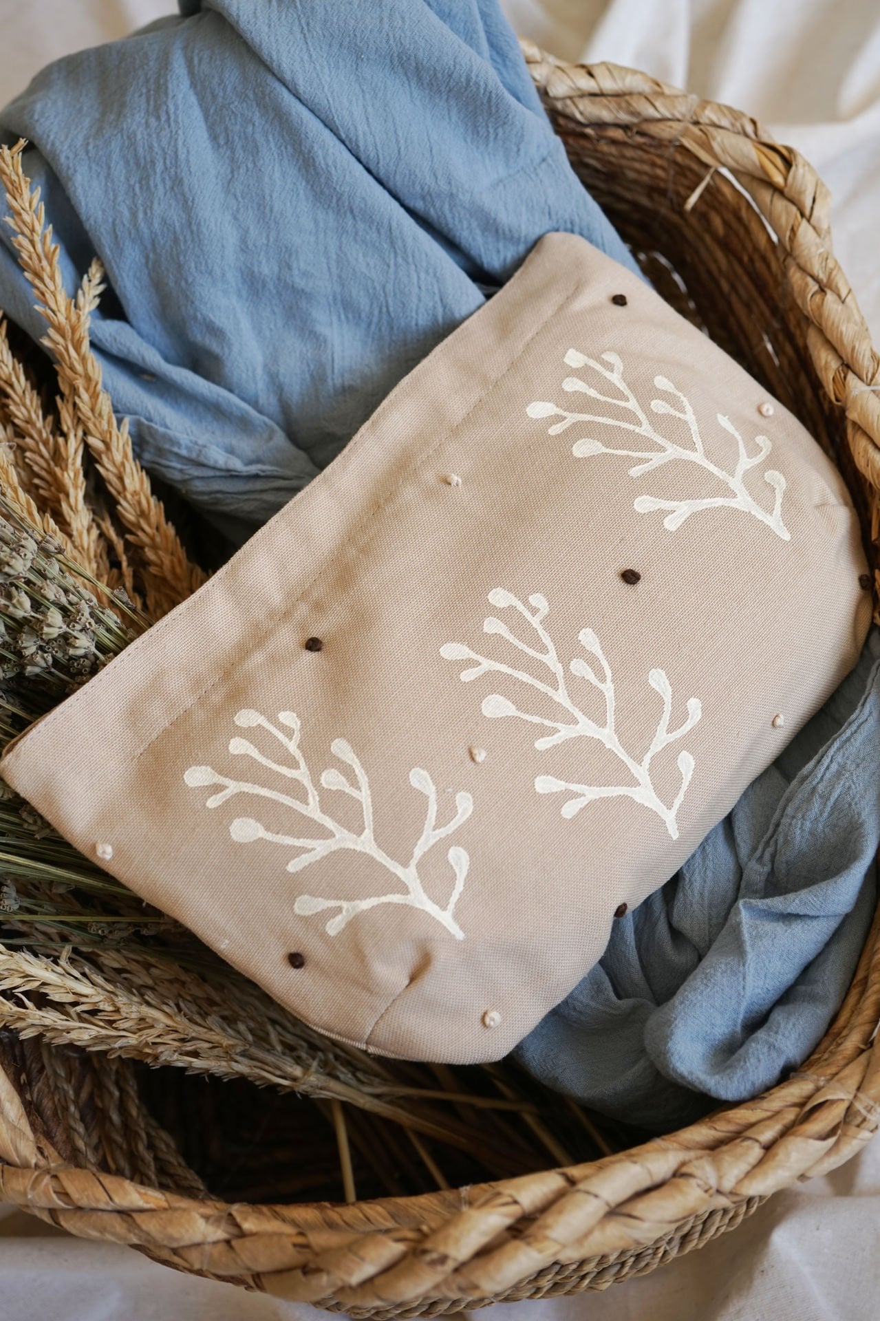 Mardin Ahşap Baskı ve Doğal Boyama Atölyemizin kadın üreticileri tarafından doğal ham maddelerden el yapımı olarak üretilmiştir.