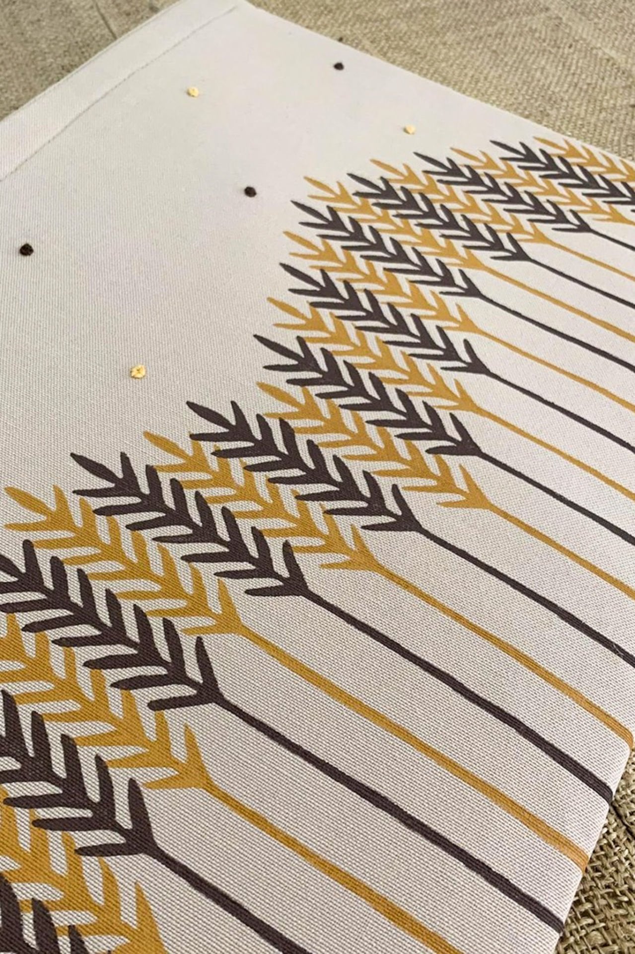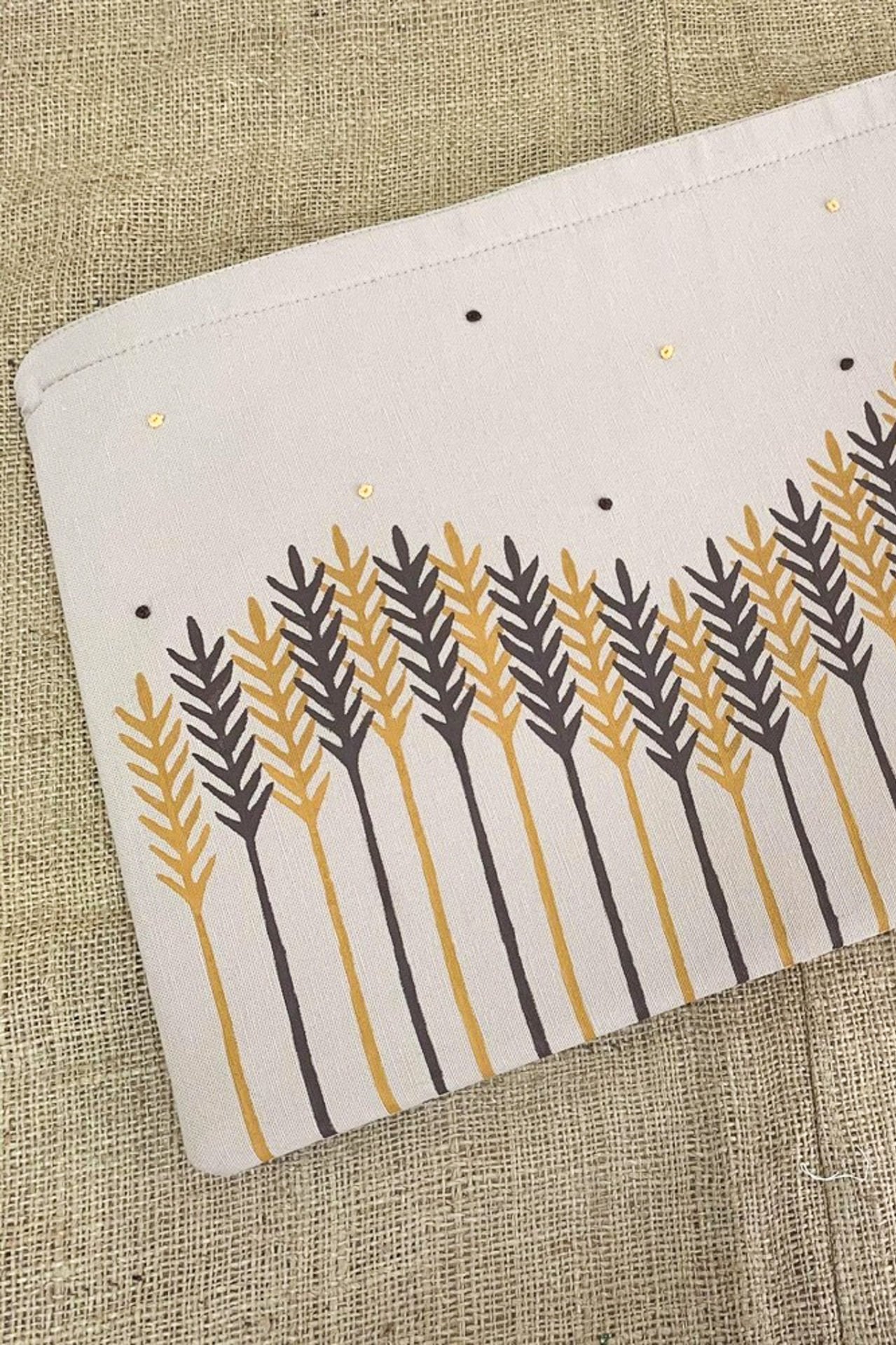 Mardin Ahşap Baskı ve Doğal Boyama Atölyemizdeki üretici ve girişimci kadınlar tarafından doğal ham maddelerden el yapımı olarak üretilmiştir. Üzerindeki desenler, Ahşap Baskı Tekniği ile uygulanmaktadır. Minik puantiyeler, tohum işi el nakışıdır.